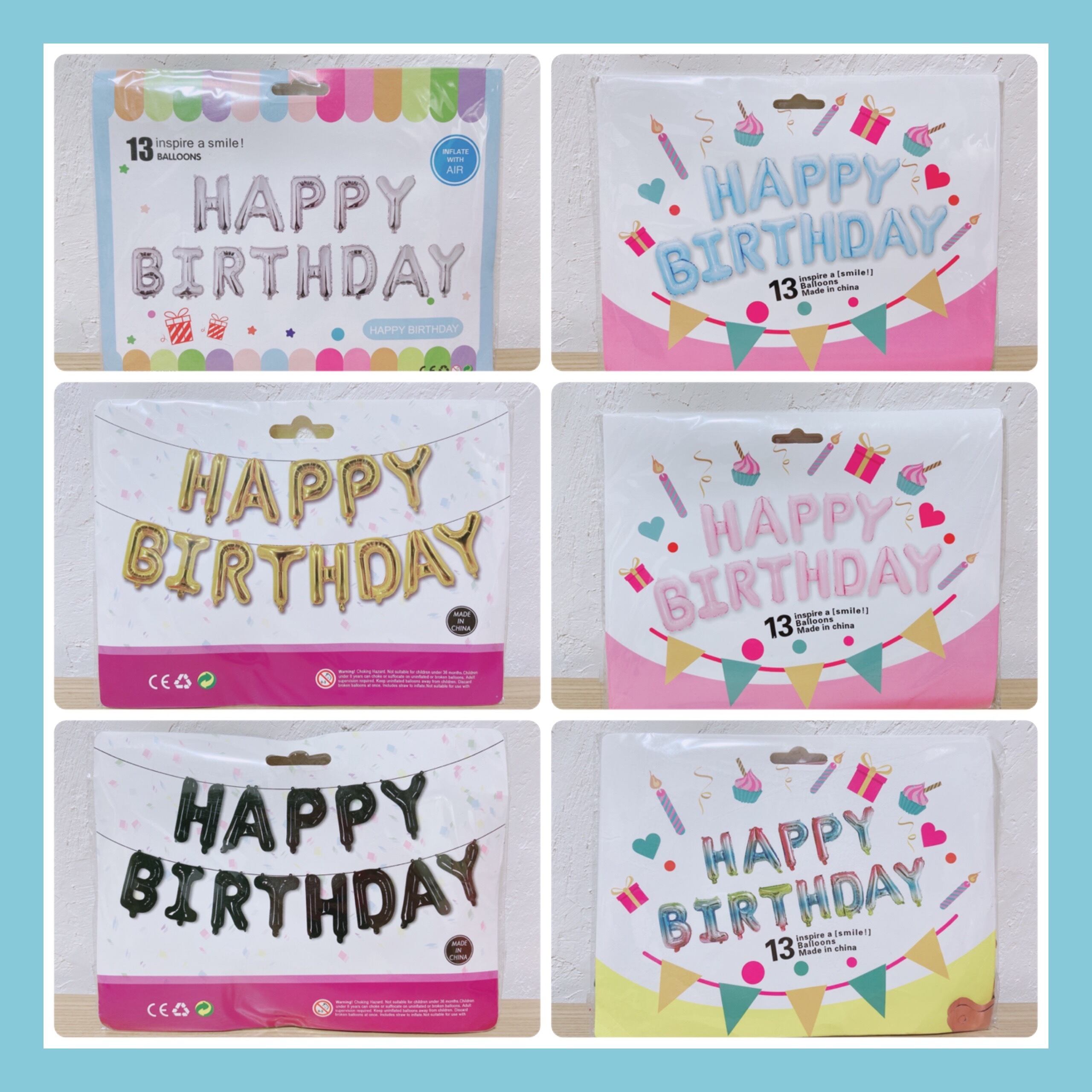 APPY BIRTHDAY の文字風船(13文字)セットです。